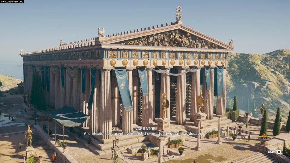 Ateny wyróżniają się na tle dwóch pierwszych miast nieco bardziej górzystym krajobrazem. Nie mogło się oczywiście obyć bez wizytówki Grecji, to jest bez Akropolu w postaci znanych nam ruin. W pełnej krasie, czyli w czasach swojej największej świetności, mogliśmy tę budowlę ostatnio podziwiać w Assassin’s Creed: Odyssey.