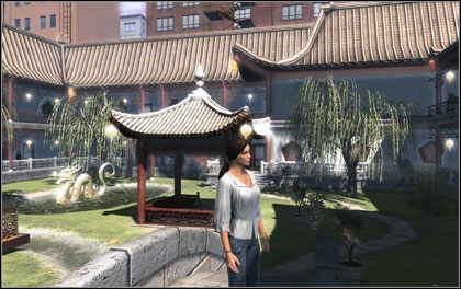 Męczarnie w Chinatown nie nastawiły mnie zbyt optymistycznie do drugiej misji, dlatego jakość jej wykonania okazała się sporym i bardzo miłym zaskoczeniem. Tym razem akcja miała miejsce w luksusowym klubie dla lokalnej elity. Zacząłem jako Strogov, a moim zadaniem była neutralizacja systemu alarmowego. Po krótkim zwiadzie zrozumiałem, że pilnuje go zbyt wielu nieprzyjaciół, bym mógł dokonać tego metodą siłową. Dlatego przełączyłem postać na Olgę, która ubrana w czerwoną suknię gościła na małym przyjęciu nieopodal basenu. Będąc w jej skórze, zagadałem ochroniarza, broniącego wejścia do budynku chroniącego system alarmowy. Po przełączeniu na Strogova mogłem więc spokojnie przekraść się za plecami zajętego konwersacją z piękną agentką strażnika.