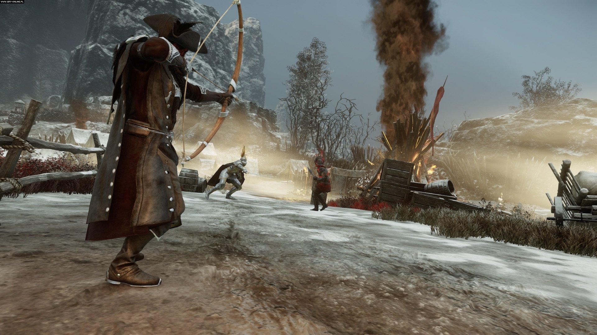 Kulminacyjnym elementem prezentacji gry było oblężenie fortu przez pięćdziesięciu atakujących graczy, i trzeba przyznać, że nie licząc paru niedoróbek tu i tam, emocje były wręcz epickie. Nasza pięćdziesiątka musiała zrobić wszystko, by twierdza nie padła, czyli nie dopuścić do zdobycia wszystkich punktów kontrolnych. Niektóre z nich były w środku fortu, a ogromną bramę broniącą do nich dostępu dało się zniszczyć. W zależności od wybranej broni i specjalizacji, część grających ścierała się w polu, w walce bezpośredniej, inni zaś ostrzeliwali wrogów z daleka za pomocą łuków i muszkietów.