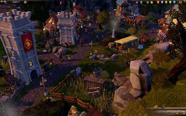 Drugą, nieco mniej istotną część zabawy stanowi zarządzanie własnym miastem – tyczy się to głównie stolic, gdzie możemy umieszczać różnorodne punkty usługowe, pozwalające na zdobycie odpowiednich surowców służących do rozwoju nie tylko miast, ale i naszych bohaterów. Rozbudowa miejscowości odbywa się w dość osobliwym trybie – poszczególne tereny ulokowane wokół zamku są bowiem odblokowywane poprzez postawienie strażnic, rozciągającym naszą kontrolę na te obszary. Miejsca na poszczególne budynki są z góry wyznaczone – na każdy teren przypada ich ledwie kilka, ale możliwości rozbudowy kolejnych dzielnic są całkiem spore, więc miejsca raczej nie powinno nam zabraknąć. Warto także wspomnieć, iż zarządzanie miastem odbywa się w systemie turowym – wszelkie profity związane z wydobywaniem surowców czy rzemiosłem pojawiają się po zakończeniu dnia.