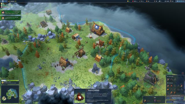 Na Northgard zwróciłem uwagę głównie z powodu… sympatycznej oprawy graficznej. Utrzymana w lekko komiksowym stylu i nasycona intensywnymi barwami przypomina Valhalla Hills sprzed dwóch lat. Nie jestem zwolennikiem tezy, że dobra gra koniecznie musi być ładna, ale w przypadku Northgard oprawa w udany sposób koresponduje z samą rozgrywką i dobrze wprowadza w nordycki klimat. Twórcom udało się nie tylko zaprojektować sympatyczne postacie i klimatyczne zmiany pogody, ale też ładny i wygodny interfejs. Nie brak w nim miejsca na usprawnienia, ale… cieszy sama jego obecność! A to wcale nie takie oczywiste w dzisiejszych Early Accessach (tak, Naval Action, mówię o tobie).