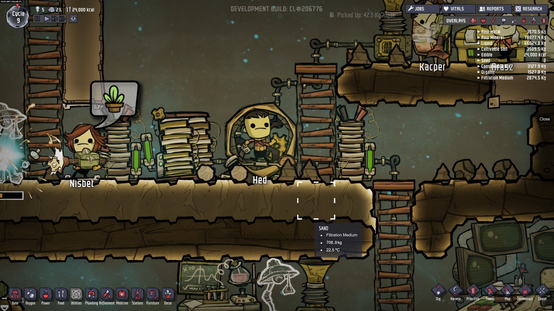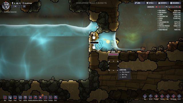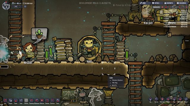 Zignorowanie potrzeb naszych podopiecznych prowadzi właśnie do takich rezultatów, przy czym stres może zostać rozładowany chociażby poprzez wyżywanie się na Bogu ducha winnych urządzeniach. Tak naprawdę moment kompletnego upadku morale nadszedł po paru godzinach zabawy, bo gra na razie jest stosunkowo łagodna, o ile na bieżąco próbujemy uporać się z problemami. Błędne założenia organizacyjne i planistyczne wychodzą dopiero po dłuższym czasie, przy czym trzeba zaznaczyć tu jedno: na razie w Oxygen Not Included raczej nie da się stworzyć kolonii całkowicie samowystarczalnej.