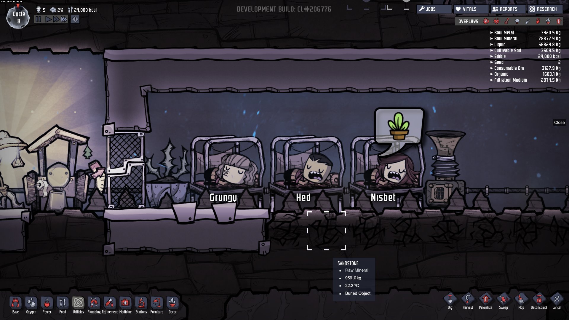 Nie jest zaskoczeniem, że Oxygen Not Included od pierwszych chwil kojarzy się z RimWorldem – losujemy pierwszych mieszkańców kolonii, po czym gra tworzy mapę i wyznacza nam prosty cel: przetrwać. Podstawowa różnica między tymi dwiema produkcjami polega tak naprawdę na innym innym widoku z kamery, chociaż z czasem można odkryć parę aspektów, w jakich Klei chce przodować. Zanim do tego dojdzie, musimy skupić się na podstawach – zacząć zbierać surowce, wytworzyć koje dla mieszkańców i rozejrzeć się za jakimś jedzeniem.