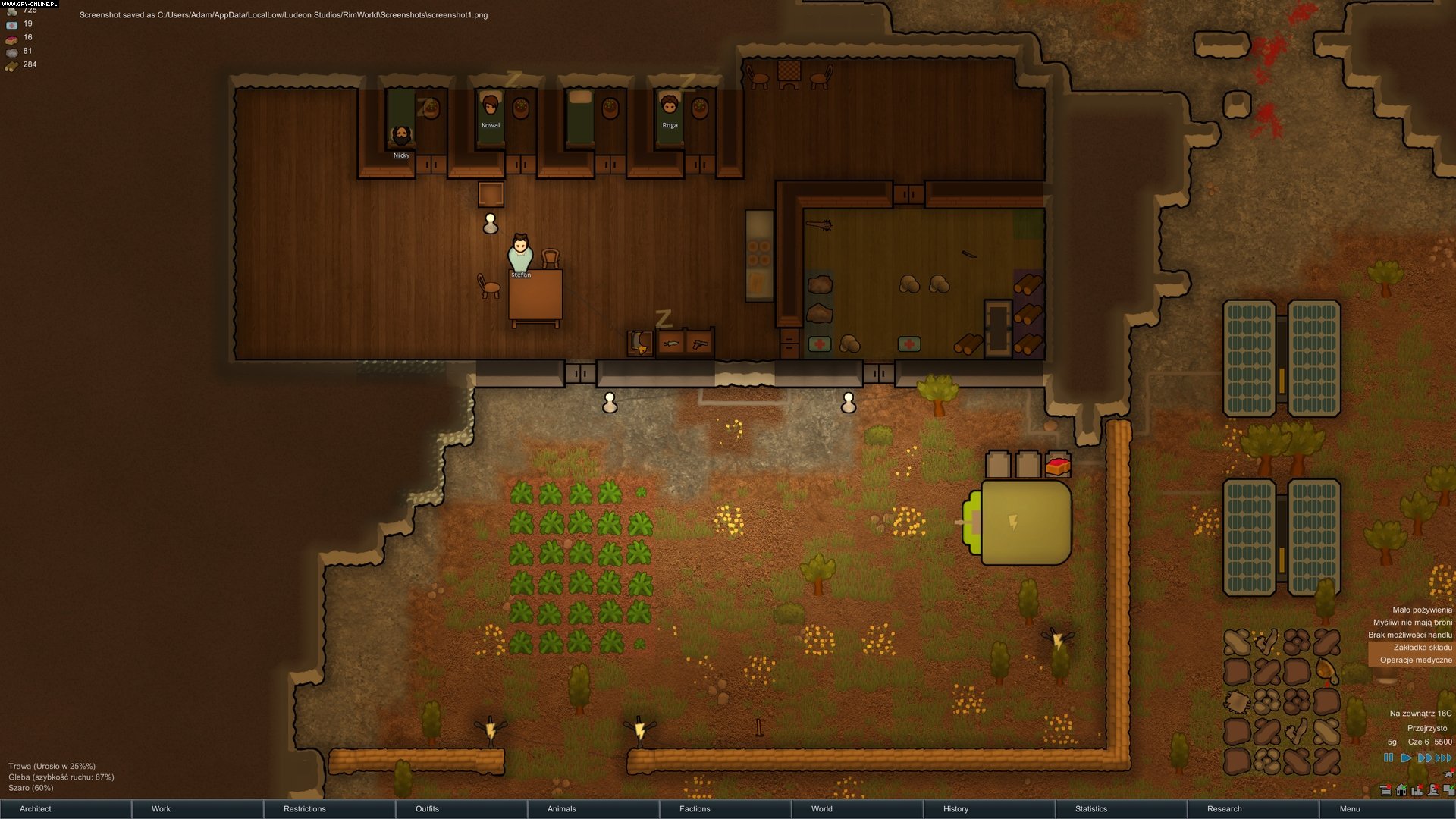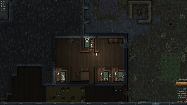 Nie zmienia to faktu, że RimWorld może być lepszy. Przydałby się bardziej dopracowany interfejs, bo ten miejscami wygląda topornie. Zdarzało mi się też nie zauważyć różnych alertów (chowają się w prawym dolnym rogu ekranu), a są one czasem bardzo istotne – np. w momencie wrogiego najazdu mamy niewiele czasu na skuteczną reakcję. Liczę również na rozbudowany tutorial – aczkolwiek w zabawę wgryzłem się dużo szybciej, niż myślałem, a kolejne elementy rozgrywki okazywały się dość intuicyjne. (Moi ludzie nie przygotowują posiłków z upolowanego dzika? No tak, brakuje stołu dla rzeźnika). Z czasem jednak RimWorld będzie grą jeszcze bardziej rozbudowaną, więc dobre wprowadzenie w rozgrywkę na pewno pomogłoby w przełamaniu pierwszych lodów świeżym graczom.