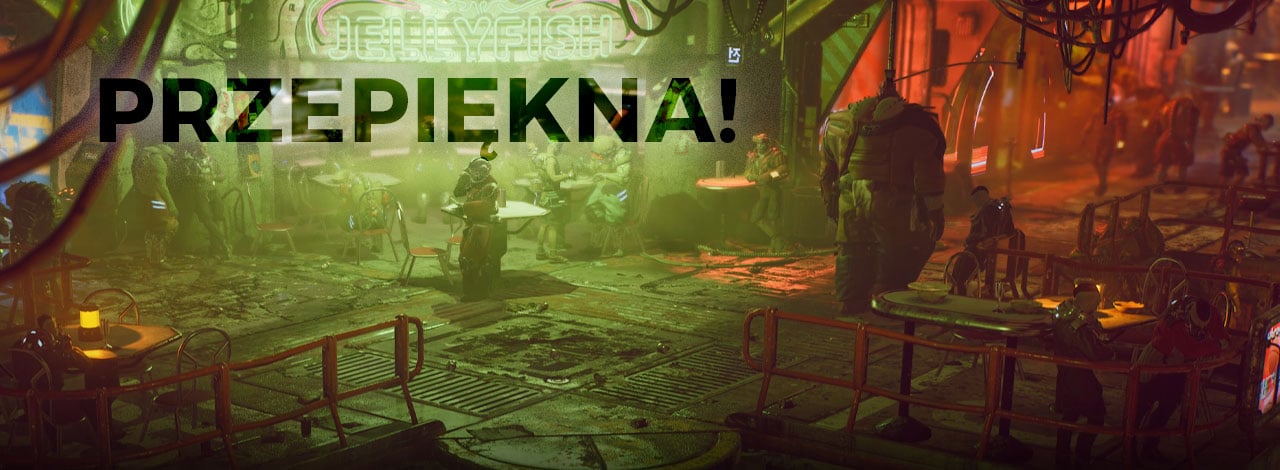 The Ascent jest pierwszym tytułem, przy którym w głowie powstała mi myśl, że oto zbliżamy się do granicy możliwości – że już nie da się zrobić ładniejszej grafiki. Mało tego, kiedy testowałem demo na zdalnym pokazie prasowym, raz po raz zastanawiałem się, czy ta pozycja nie jest aby... aż zanadto ładna. Czy gracze nie uznają, że twórcy przesadzili z liczbą szczegółów, gubiąc klarowność obrazu. Sam musiałem nie raz i nie dwa wytężyć wzrok, by zorientować się, która część środowiska jest interaktywna, a która nie – albo które postacie stojące w tłumie to wrogowie. Nie przeceniajcie jednak tego mankamentu.