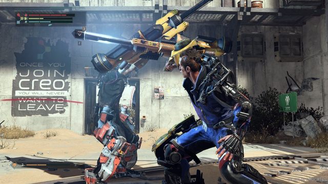 Dodatkowo skupiając się na jednym elemencie, np. kończynie trzymającej broń, możemy po paru ciosach spróbować ją odciąć i tym samym zakończyć walkę w brutalny sposób. Odrywając fragmenty metalowego adwersarza, zyskujemy części i schematy, z których później da się tworzyć sprzęt. Podobny system funkcjonował z powodzeniem w wielu grach, np. w Dragon’s Dogmie.