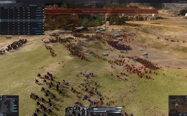 I tu pojawiają się pierwsze różnice. W przeciwieństwie do pełnoprawnych Total Warów, dowodzimy zaledwie trzema oddziałami – pozostałe dwadzieścia siedem pozostaje w rękach innych graczy. Z jednej strony może wydawać się to zbyt małą liczbą, aby mieć realny wpływ na zmagania, z drugiej pozwala na znacznie większą kontrolę nad naszymi wojakami. Walka sprowadza się do sprawdzonego systemu papier-kamień-nożyce (piechota-strzelcy-kawaleria), stąd też niejednokrotnie będziemy krążyli naszymi oddziałami dookoła wrogiego zgrupowania szukając dogodnego miejsca do uderzenia. Jako, że po drugiej stronie znajdują się żywi gracze a nie sztuczna inteligencja możemy być pewni, że i oni będą próbowali znaleźć słabe punkty w naszym szyku. Najważniejsza jest jednak współpraca z reszta drużyny. Jeśli sojusznik zatrzymuje przeciwnika w miejscu, powinniśmy wspomóc go szarżą z flanki, zaś dowodząc łucznikami warto skupić nasz ogień na oszczepnikach nękających piechotę. Czasami warto poświęcić własne oddziały, aby zatrzymać wrogą odsiecz i kupić trochę czasu innemu graczowi, który akurat przejmuje flagę.