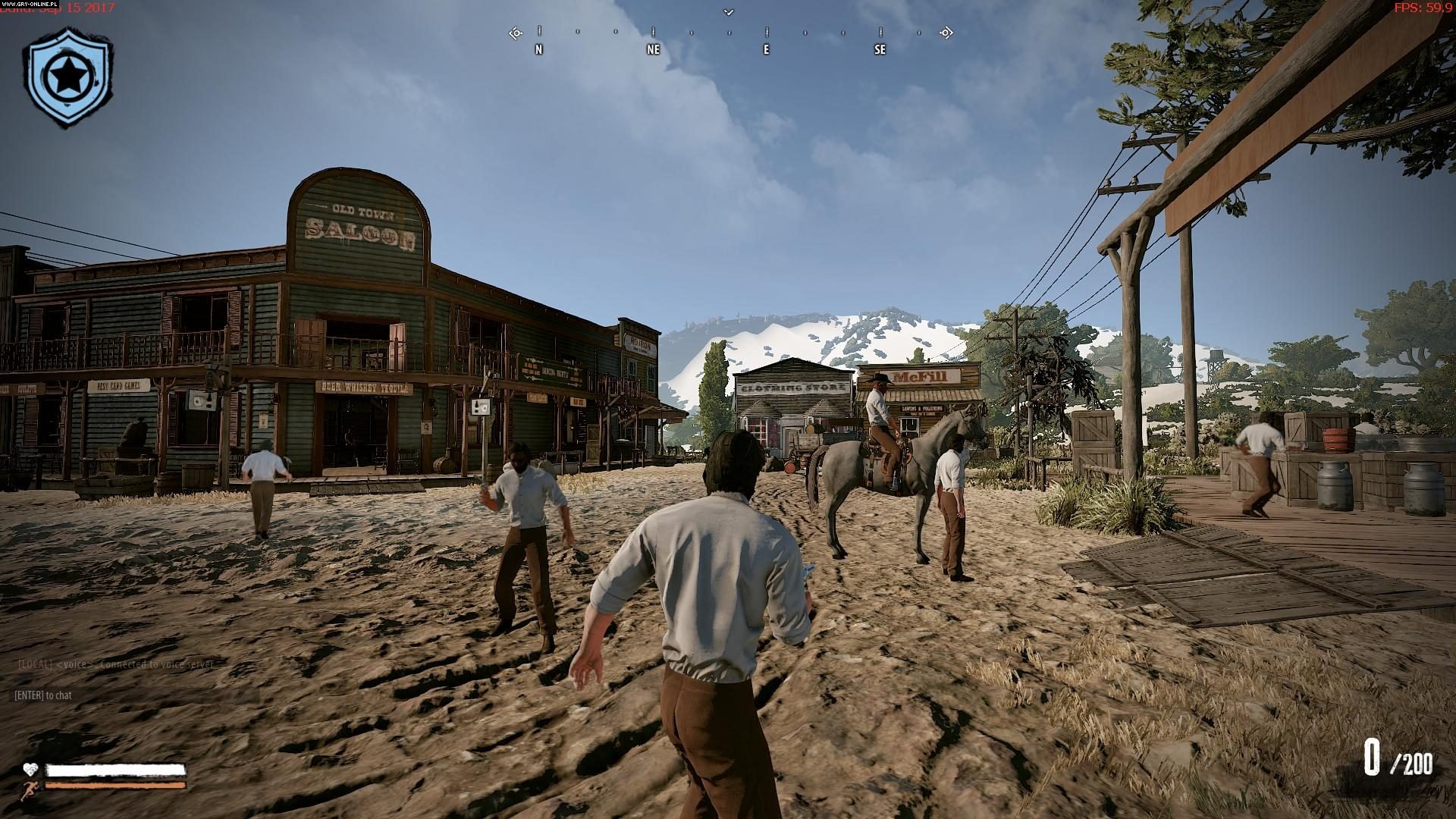 W miastach nikogo nie zastrzelimy, bo obowiązuje tam strefa ochronna i kule po prostu przelatują przez inne postacie bez żadnych konsekwencji. Poza nimi jest już wolna amerykanka i rywalizacja, kto kogo szybciej pośle do piachu. Zabijanie, podobnie zresztą jak kradzież, wiąże się z utratą reputacji. Nad notorycznymi złoczyńcami pojawia się odpowiednia ikona sugerująca, że mamy do czynienia z bandziorem, ale na razie ta mechanika poza samym suchym opisem w żaden sposób nie przekłada się na warunki zabawy. Zresztą aktualnie biuro szeryfa świeci pustkami, więc nawet nie ma kto zatroszczyć się o biedne ofiary. W pełnej wersji w przybytku stróżów prawa będziemy zaopatrywać się w listy gończe, co deweloperzy zaprezentowali na jednym z filmików reklamujących ich produkt.