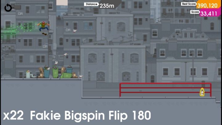 Wyznam szczerze, że pierwsze zwiastuny nie wyglądały zachęcająco (jeśli nie liczyć muzyki), więc produkcję tę kupiłem stosunkowo późno. Pierwszy kontakt był równie bolesny jak moje próby w rzeczywistości, ale – jak przekonują nas multimilionerzy – sukces jest zbudowany na porażce. Kiedy załapałem tempo wciskania przycisków, okazało się, że OlliOlli jest grą wybitną. Podstawę jej uroku stanowi zręcznościowa mechanika jeżdżenia na deskorolce i wykonywania tricków. W największym skrócie jest to Tony Hawk w dwóch wymiarach połączony z runnerem. Cały czas pędzimy tu w prawo, pokonując przeszkody i wykonując sztuczki. Kampania serwuje nowe wyzwania na każdym z poziomów i zachęca do odkrywania kolejnych sztuczek czy sekwencji.