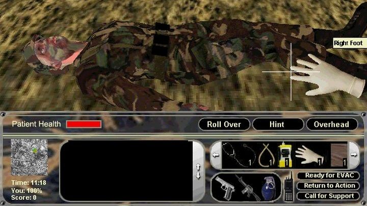 Przy pierwszym kontakcie gra wygląda jak tandetna „mobilka” z czasów Javy, w której ruchy żołnierzy obserwujemy w rzucie izometrycznym, podobnie zresztą jak paskudną teksturę ziemi oraz kanciaste do granic możliwości przeszkody terenowe. Całość rozkręca się jednak, gdy rozpoczyna się walka z przeciwnikami. Wtedy bowiem, kiedy nasi towarzysze padną ranni na ziemię, zmuszeni jesteśmy do nich podbiec, zawlec w bezpieczne miejsce poza zasięg nieprzyjacielskiego ostrzału i uratować im życie. Kamera zmienia wówczas położenie, pokazując rannego z perspektywy klęczącego przy nim medyka – a gracz musi ocenić obrażenia kompana i opatrzyć go zgodnie z posiadaną wiedzą. Inaczej należy więc podejść do rannej kończyny, a inaczej, gdy żołnierz oberwie w korpus. Przy stawianiu kompanów na nogi korzystamy z wielu elementów wyposażenia, decydujemy także o ewakuacji poszkodowanego.