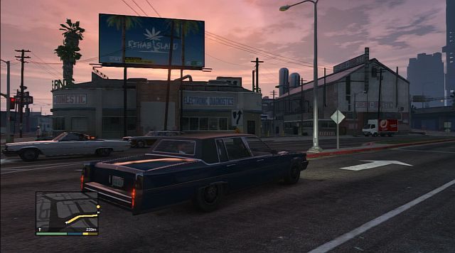 - Przykładowy billboard znajduje się na rogu ulic Strawberry/Elgin Ave, niedaleko pierwszej kryjówki Franklina.