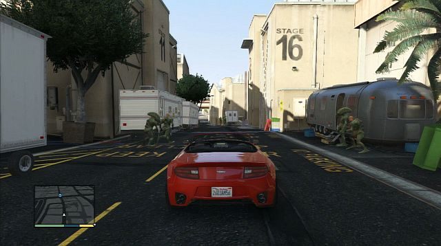 Przejeżdżając w pierwszej misji Franklinem przez zaplecze studia filmowego można pogonić stadko aktorów przebranych w kostiumy przypominające ksenomorfy. Czyżby w Vinewood kręcono kolejną odsłonę sagi z obcymi w roli głównej?