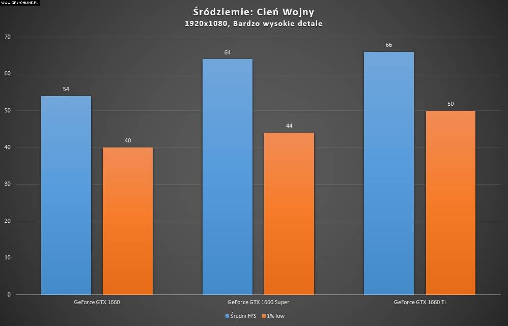 Jedynymi kartami, które przekroczyły barierę 60 fps w Śródziemie: Cień wojny, są GTX 1660 Super oraz GTX 1660 Ti. Zwykła 1660 (niepodkręcona) niestety nie potrafi wygenerować tylu klatek na sekundę na najwyższych detalach w rozdzielczości 1080p.