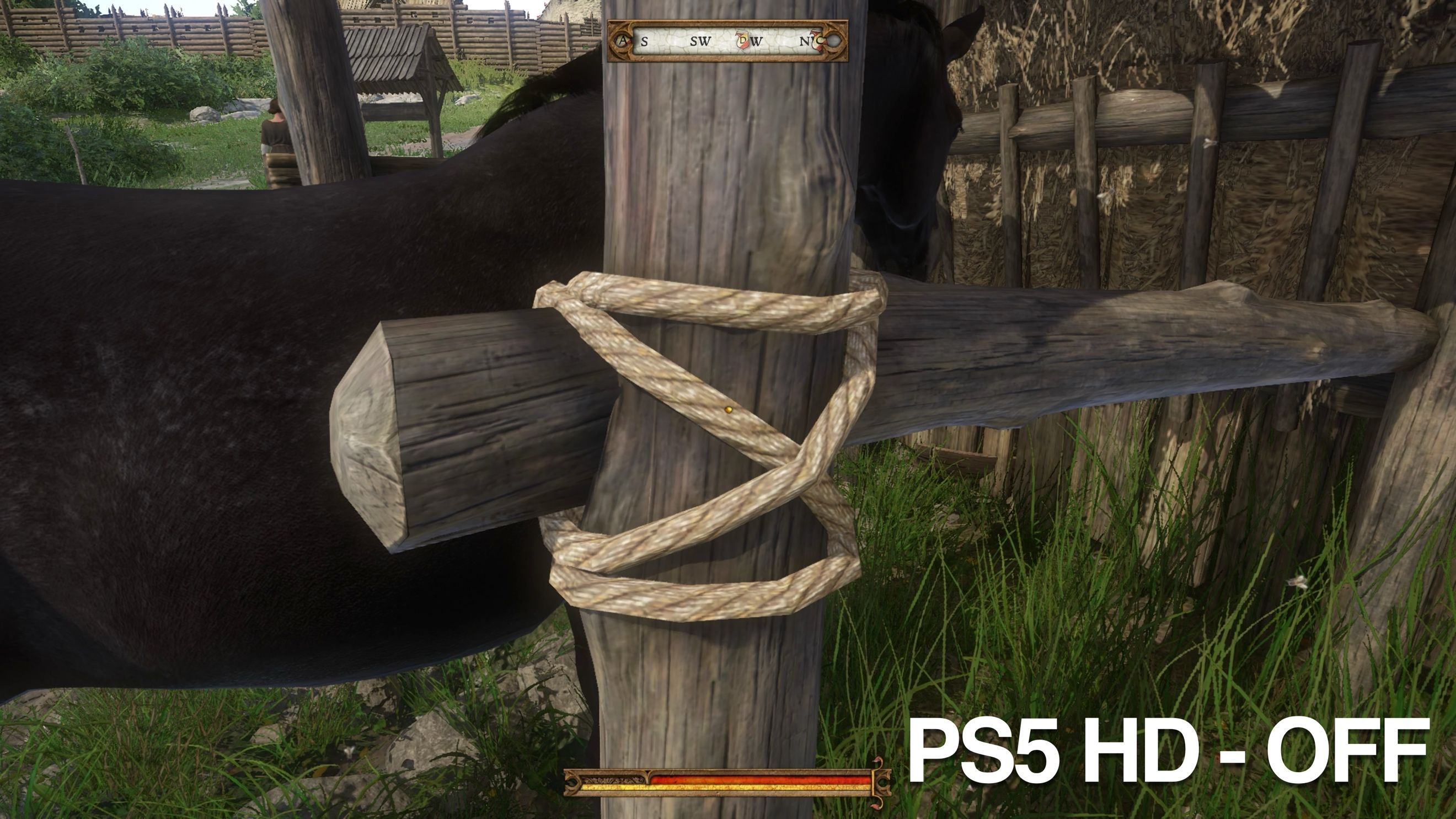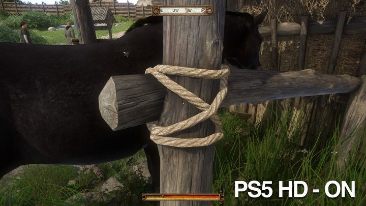 Stabilne 60 klatek jest za to po ustawieniu nowej opcji graficznej, która pojawiła się w wersji Enhanced i w KCD nie jest to tradycyjny tryb jakości i wydajności, tylko możliwość włączenia „tekstur HD”. W szerokich kadrach, w czasie akcji oczywiście żadnej różnicy nie widać, ale gdy podejdziemy blisko z lupą, to różnica rzeczywiście jest dostrzegalna. Jak to wygląda, możecie zobaczyć na screenach poniżej.