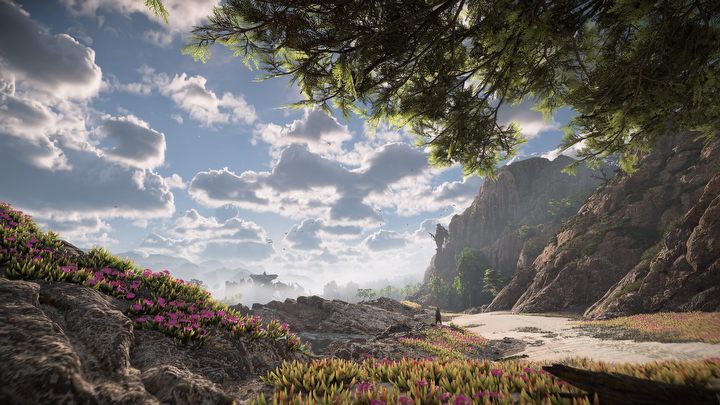 Na koniec została skala makro, czyli wszelkie krajobrazy w każdym rejonie mapy. Forbidden West pod tym względem to istny generator tapet! W grze praktycznie nie istnieje miejsce, które nie robiłoby wrażenia czy o którym można by powiedzieć, że jest nudne, generyczne lub brzydkie. Poniżej zaledwie kilka z całego mnóstwa przykładów – bez opisów, bo nie wymagają żadnego komentarza. Po prostu warto popatrzeć na horyzont, dokądkolwiek zabierze nas Horizon Forbidden West.