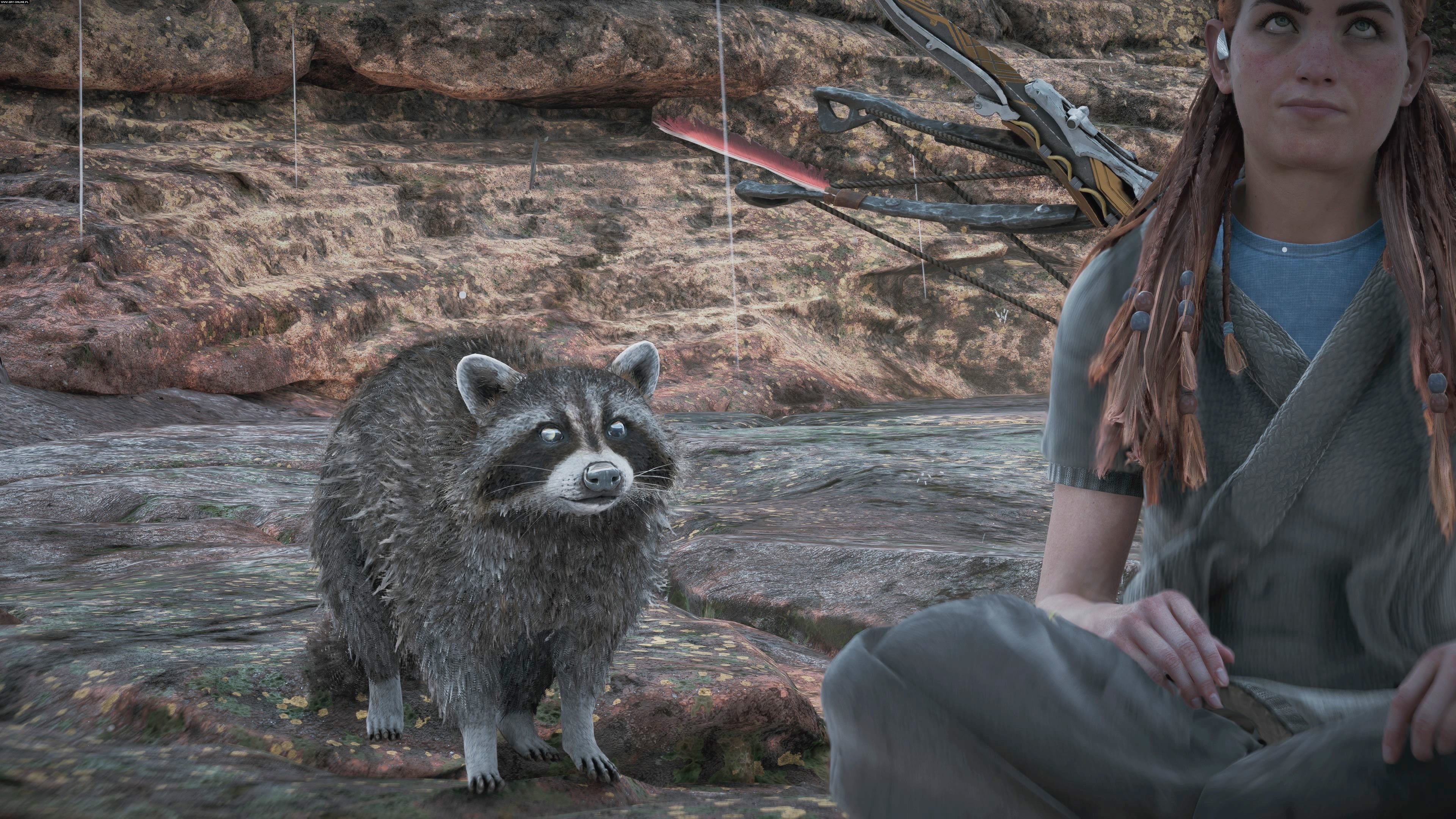 Futrzaste zwierzęta może nawet odrobinę ustępują pod względem jakości gadom czy skorupiakom, ale i tak poziom ich wykonania zasługuje na uznanie. Szczególnie urocze są szopy, polowanie na które wydaje się po prostu przejawem okrucieństwa wobec zwierząt. O wiele lepiej strzelić sobie fotkę z takim horizonowym Rocketem, zwłaszcza że chętnie pozuje z Aloy – nie zawsze szczęśliwą z tego powodu.