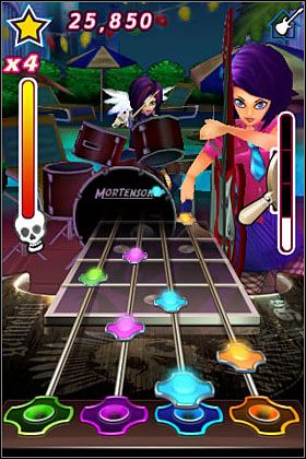 Ta gra muzyczna doczekała się już dwóch odsłon. W ogóle gatunek ów ma silną reprezentację iphone’owa reprezentację. Kolejne odsłony serii Tap Tap są najczęściej ściąganymi aplikacjami, a Electronic Arts kilka dni temu wprowadziło (na razie w Stanach) mobilną edycję Rock Band. Guitar Rock Tour w zalewie przeciętnych gier rytmicznych wyróżnia się licencjonowaną tracklistą. Michael Jackson, The Police, Scorpions, Nirvana, Deep Purple, to oni stanowią m.in. o popularności gier muzycznych na dużych konsolach. Denerwująca jest nieco infantylna i przeładowana fajerwerkami oprawa graficzna, średnio pasująca do mocniejszych kawałków. Dodatkowo gra nie wyrabia przez to, że na ekranie cały czas trójwymiarowe modele odstawiają koncert i po zagraniu dwóch piosenek następuje wyraźne opóźnienie dźwięku względem obrazu, co uniemożliwia poleganie na rytmie piosenki i wymaga skupienia się na kolorowych spadających znacznikach. Oprócz standardowej gitary mamy zadziwiająco fajną perkusję, jak na dwa bębny i talerz. Polecam zainteresować się drugą częścią GRT, która ma usprawnione technikalia, a dodatkowo ma umożliwiać kupowanie nowych utworów w ramach mikrotransakcji.