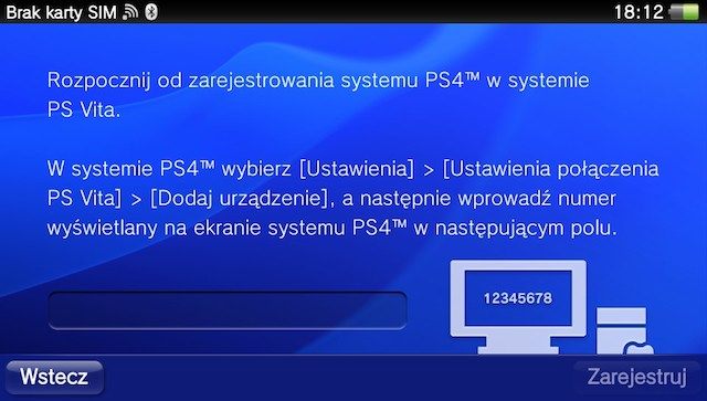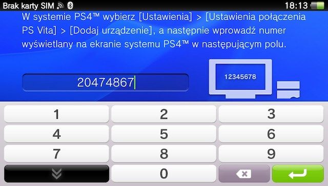 Wracamy do Vity i wpisujemy numer podany przez PlayStation 4.