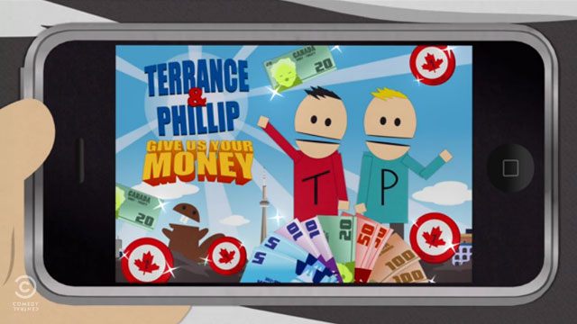Dotarliśmy do najnowszego sezonu, który właśnie zakończył swoją bardzo udaną premierową egzystencję na kanale Comedy Central (całość można ciągle oglądać na oficjalnej stronie serialu). Szósty odcinek skupia się na bardzo aktualnej, popularnej i kontrowersyjnej sprawie darmowych gier, które wcale darmowe nie są. Twórcy wrzucili wszystkie wady aplikacji freemium do jednej, cudownej, typowo southparkowej gry adekwatnie zatytułowanej Terrance and Phillip: Give Us Your Money.