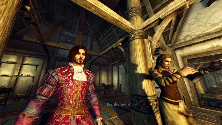 Kiedy spotkał Jaskra w jednej z cyrodiilskich szulerni, z radości prawie się popłakał. Oczywiście wiedźminowi nie wypadało ronić łez, więc ograniczył się do przyjacielskiego uścisku. Tyle że jego kamrat nawet go nie odwzajemnił, zaczął za to komplementować Geralta za zwycięstwo na arenie (czego ten jakoś nie mógł sobie przypomnieć) i łazić za nim noga w nogę. WSZĘDZIE.