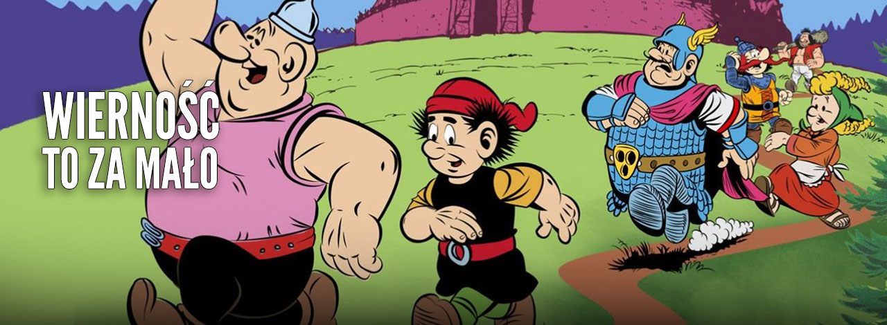 Wspominałem o wierności animacji względem komiksowego pierwowzoru – jest to jednocześnie największa zaleta oraz wada kreskówki. Znam na pamięć wszystkie księgi, więc oglądając te same obrazki i słuchając tych samych kwestii dialogowych, siła nostalgii uderzyła mnie z podwójną mocą. Nie chodzi tu tylko o powracające gagi w stylu sadzenia orchidei na mogile Mirmiła, wyprowadzki do mamy Lubawy czy rąbania wszystkiego „na plasterki” przez Zbójcerzy. W kreskówce zobaczymy dokładnie te same sceny i rozmowy z różnych fragmentów komiksu, z minimalnymi zmianami, a raczej przesunięciami niektórych wątków.