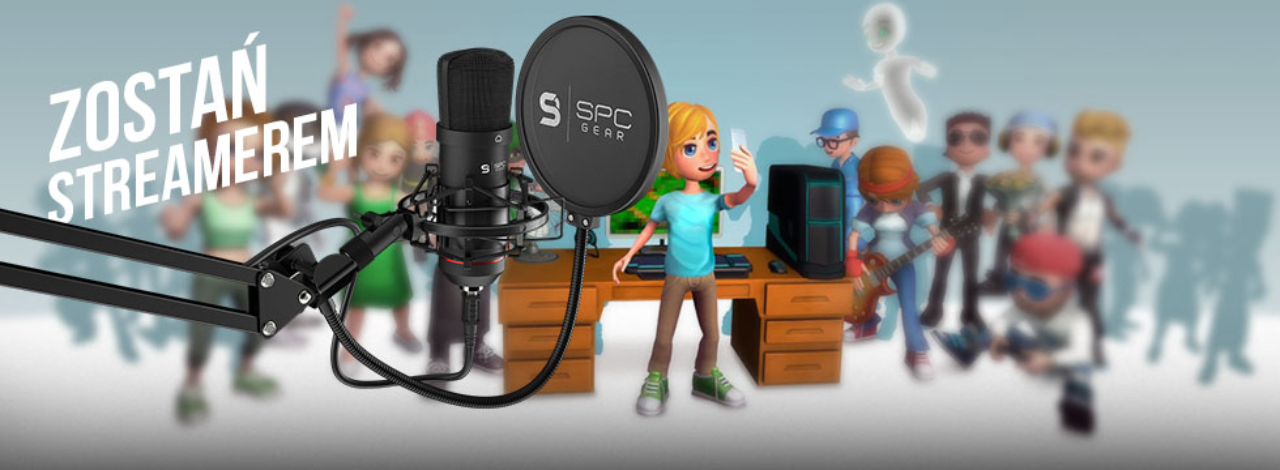 Na szczęście rosnąca popularność streamowania sprawiła, że większa liczba producentów zdecydowała się spróbowanie swoich sił w tym segmencie. Dzięki temu do sprzedaży trafiło sporo urządzeń o niezłej jakości, ale w rozsądnej cenie. Aktualnie jednym z najczęściej polecanych mikrofonów jest SPC Gear SM900. Dlaczego? Odpowiedź jest prosta – z powodu świetnego stosunku jakości do ceny. W zestawie otrzymujemy wszystko, co będzie nam na początku potrzebne. Producent daje nam w pudle nie tylko sam mikrofon, ale również ramię do przymocowania do biurka, koszyk antywibracyjny, pop filtr oraz wymagany przewód USB o sporej długości. Urządzenie wystarczy wyciągnąć z pudła, zamontować i można już z niego korzystać.