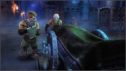 Prezentacja Reckoninga rozpoczęła się niczym dobrej klasy opowiadanie, którego gatunek chyba jeszcze dość trudno ustalić (wygląda to na coś pomiędzy typowym heroic fantasy a parodiami w stylu Pratchetta). Po szybkim stworzeniu postaci autorzy pokazali wstęp do zabawy – dwójkę gnomów ciągnących wózek ze zwłokami i dywagujących na lokalne tematy. Wkrótce grabarze dotarli do otworu w murze i zrzucili przezeń truposza na stertę padliny, leżącą kilkanaście metrów poniżej. W ten oto sposób poznamy naszego bohatera, który po dość nieprzyjemnym początku powstanie z martwych. Producent wyjaśnił, że tego typu przygody „najlepiej zaczynać od czegoś osobistego”, bo tylko tak można przyciągnąć w pełni uwagę odbiorców. W pierwszej chwili gracz zada sobie pytanie, o co chodzi i w jaki sposób powróciliśmy do świata żywych.