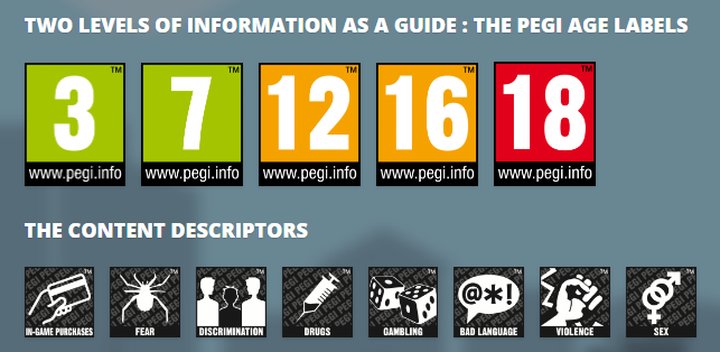 Zacząć należy od przyjrzenia się najpopularniejszym instytucjonalnym systemom oceny treści. Najważniejsze z punktu widzenia gier dla obywateli Unii Europejskiej jest oczywiście Pan European Game Information, czyli znane zapewne wszystkim czytelnikom PEGI. PEGI założone zostało przez Interactive Software Federation of Europe (ISFE) w kwietniu 2003 roku i obecnie używane jest w 38 krajach. Ocena w ramach tego systemu składa się z dwóch części. Pierwszą z nich stanowi określenie, do jakiej grupy docelowej kierowany jest dany produkt: czy dozwolony jest od 3, 7, 12, 16 czy 18 lat. Dodatkowo w tej sekcji może być dodany znak wykrzyknika, sugerujący iż gra powinna być szczególnie kontrolowana przez rodzica ze względu na treści, które mogą pojawiać się w ramach danej grupy wiekowej. Warte zauważenia jest to, iż system ten wydaje się relatywnie odważny – dopuszcza realistyczne przedstawienie przemocy, zachowań seksualnych czy scen używania narkotyków już w przypadku odbiorców powyżej 16. roku życia. Drugą częścią oceny są charakterystyczne piktogramy, które mają informować, czy w grze występują treści przypisane do jednej z dziewięciu kategorii: przemoc, seks, dyskryminacja, narkotyki, strach, wulgarny język, hazard, gra online, zakupy w grze. Ostatnie dwie oczywiście nie mają charakteru treści wrażliwych, są jednak ważną informacją dla rodzica. Rozgrywka online może wiązać się z dodatkowymi zagrożeniami, takimi jak narażenie się na ataki scammerów czy toksyczna społeczność gry, zaś zakupy dokonywane w grze są przestrogą dla rodziców szczególnie młodszych dzieci, na wypadek gdyby z ich karty płatniczej w tajemniczych okolicznościach zaczęły ginąć pieniądze.