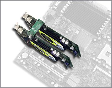 Tym niemniej, dla osób, które aktualnie planują zakup zupełnie nowego komputera lub jego pełną modernizację, szczególnie model GeForce 6600 GT wydaje się pozycją naprawdę godną uwagi. Jak pokazują bowiem opublikowane na stronach tom’s hardware guide testy istotne z punktu widzenia graczy komputerowych model GeForce 6600 GT jest prawie 2,5-krotnie szybszy od wcześniejszego modelu ze „średniej półki” czyli GeForce 5750. Nie sposób nie zauważyć również, że bezpośredni konkurent, czyli model Radeon X600XT również znacząco pozostaje w tyle. (zainteresowanych zachęcam do zapoznania się ze wspominanymi testami). ![]() Tak prezentują się dwie połączone karty w trybie SLI