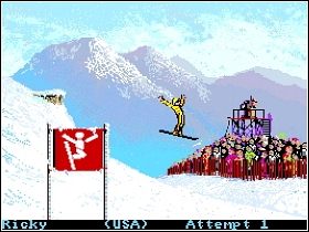 Pierwsza z opisywanych gier to doskonale znana starszym amatorom sportów zimowych produkcja studia Epyx. Winter Games wypuszczono z trzech powodów: aby sprawdzić się w nowej dziedzinie sportu, aby podgrzać atmosferę przed igrzyskami w kanadyjskim Calgary, a przede wszystkim, aby zarobić. W tym celu opracowano wersje na kilka platform m.in. Amigę, Atari ST, ZX Spectrum i NES. Różniły się one oprawą graficzną oraz liczbą dostępnych opcji rozgrywki. Zdecydowanie najlepiej wypadła edycja na poczciwą Amigę. Do zabawy można było zaprosić aż 7 kolegów i stoczyć walkę w 8 dyscyplinach. Praktycznie każdy znalazł tu coś dla siebie, choć i tak grało się we wszystko, bo coś takiego jak konkurencja na rynku gier jeszcze nie istniało. Szusowaliśmy po stokach w narciarstwie alpejskim, skakaliśmy ze skoczni, jeździliśmy bobslejami i saneczkami, biegaliśmy i strzelaliśmy w biathlonie, korzystaliśmy z łyżew, ścigając się po owalu i wykonując jakieś figury, a nawet uprawialiśmy freestyle, który notabene pojawia się w grze pod nazwą „Hot Dog”. A to dlatego, że produkcja ta wybiegła nieco w przyszłość (freestyle zadebiutował dopiero na IO w 1992 roku). Dzisiaj Winter Games raczej odstrasza niż przyciąga, niemniej warto zdać sobie sprawę, że na początku lat 90. w Polsce był to spory hicior. Pozycja ta wyróżniała się bardzo wysoką grywalnością oraz solidną oprawą i standardowo mieściła się na jednej dyskietce.