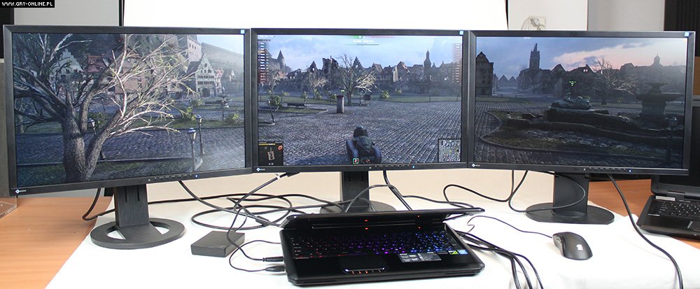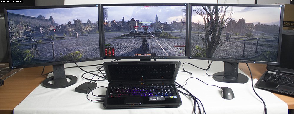 Technologia MSI Matrix Display to przeniesienie trybu Nvidia Surround do urządzeń mobilnych. Co to takiego? Możliwość podłączenia do laptopa nawet 3 dodatkowych wyświetlaczy i wykorzystania ich podczas pracy czy zabawy. Ponieważ zajmujemy się grami komputerowymi, poruszymy wyłącznie ten drugi aspekt i to na przykładzie gry, która z wielu wyświetlaczy czerpie ogromne korzyści - World of Tanks.
