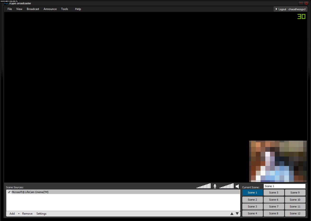 Drugą ważną rzeczą jest integracja z widzami, a więc… kamera, która nagrywa wizerunek gracza. Aby to zrobić, z tego samego menu z którego korzystaliśmy przed chwilą („File”) tym razem wybieramy pozycję „Add camera” i wybieramy interesującą nas pozycję. W głównym oknie programu natychmiast pojawi się obraz na żywo z naszej kamery, który trzeba tylko przestawić w odpowiednie miejsce na ekranie. Jest to bardzo intuicyjne i polega po prostu na przeciągnięciu myszką obrazu z kamery do preferowanego miejsca na ekranie. Teoretycznie dowolnego, bo obraz z kamery ustawić można wszędzie, ale zazwyczaj jest to któryś z rogów. Ten w którym obraz z kamery nie zasłania krytycznych dla gracza i oglądających informacji już na ekranie samej gry.