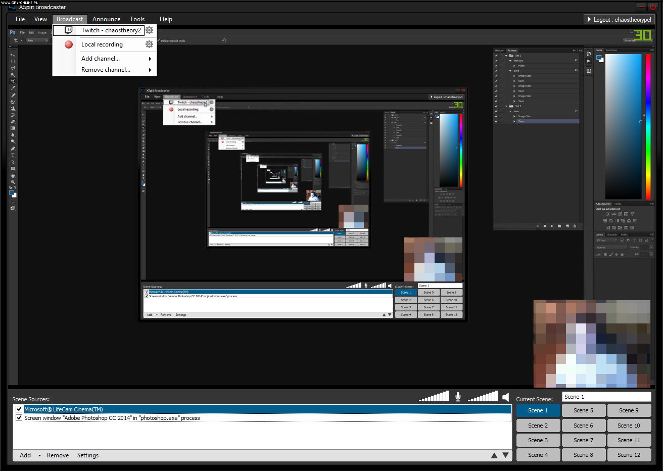 Po tych prostych krokach okazuje się, że… już skończyliśmy podstawową konfigurację w programie. Jeśli teraz udamy się do menu „Broadcast” i naciśniemy napis „Twitch – nasza nazwa użytkownika” to w zasadzie zaczniemy od razu nadawać obraz do serwisu Twitch. W praktyce obraz w serwisie Twitch.tv pojawi się po około 30-60 sekundach. Podczas przekazu na żywo życzymy tysięcy widzów i samych pięknych akcji w grze!