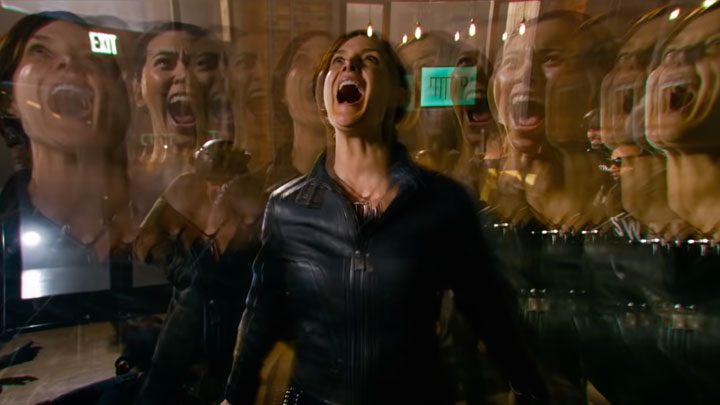 Zwiastun wrzuca dwie ciekawe wskazówki, które wymagają użycia pauzy we właściwym momencie – stosowne zrzuty ekranu widzicie w tym tekście. W jednej scenie możemy dostrzec, jak ludzie oglądają wyświetlony na projektorze pierwszy film z serii. Czy to np. oznacza, że poprzednie Matrixy były symulacją wewnątrz symulacji? Z kolei widok Trinity używającej dziwnej mocy krzyku ujawnia, że Trinity nie musi być tylko sobą – wśród kopii bohaterki granej przez Carrie-Anne Moss widzimy również nową dla serii Jessikę Henwick. Bardzo fajne są takie spekulacje, a jeszcze fajniejszy jest moment, w którym okazuje się, że chodzi o coś zupełnie innego. Niespodzianki w kinie są najlepsze!