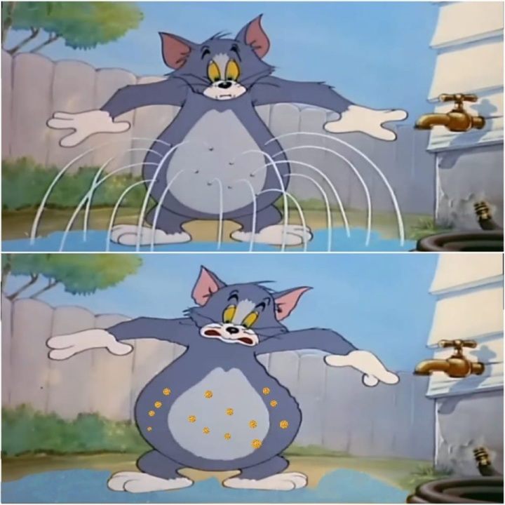 ...a u innych, najwyraźniej, dziury w brzuchu, przez które uciekał nadmiar wody. Biedna kicia. Jak widać, są równi i równiejsi!