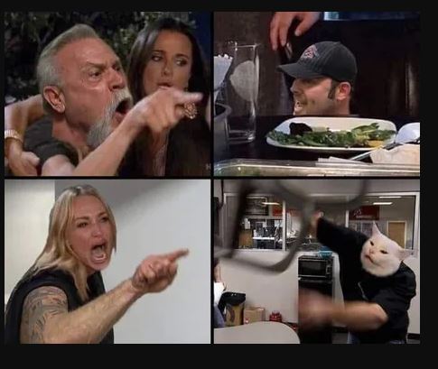 Pani po lewej nie przepada podobno za mieszaniem memów. No to masz, babo! Auć!