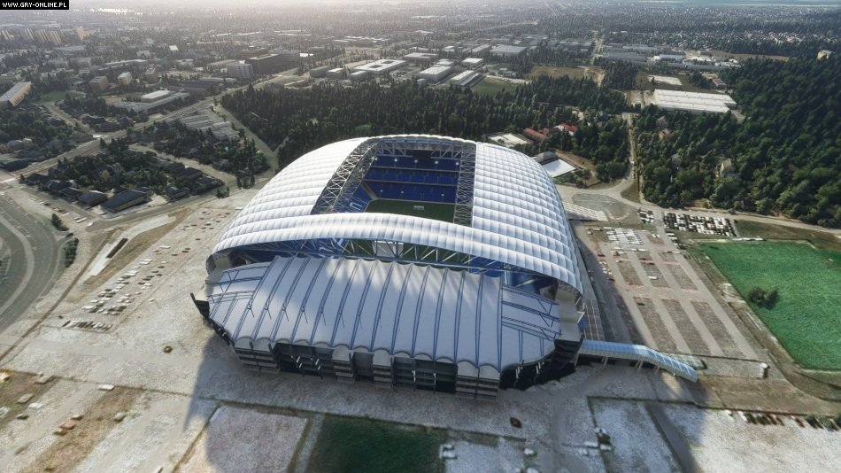 Wśród budynków z Google Maps w Poznaniu również wyróżnia się stadion miejski wykonany całkowicie od podstaw. Autor świetnie odtworzył wymyślną powierzchnię bryły obiektu, w związku z którą zwany jest on „pancernikiem”. Zjazd kamerą drona w dół ujawnia dodatkowo, że zgadza się także skomplikowany system podtrzymywania zadaszenia, kolorystka i motyw na trybunach.