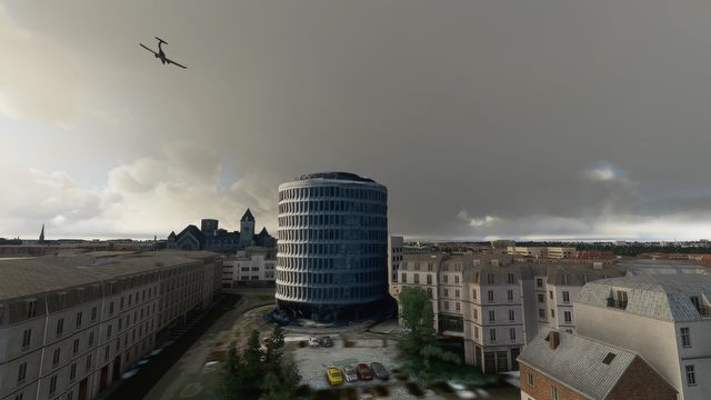 Sztuczna inteligencja blackshark.ai idealnie oddała oryginalny kształt dawnego domu towarowego „Okrąglak”, ale mod uzupełnia go o właściwy wygląd okien oraz kolorystykę.
