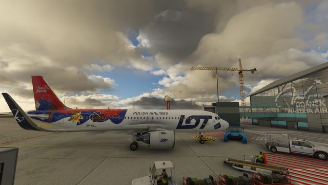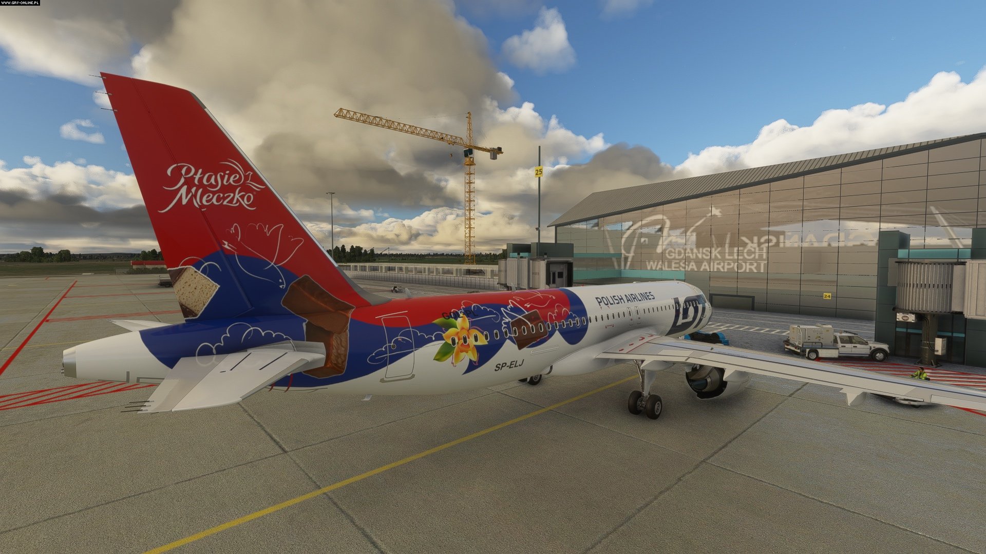 W MFS 2020 nie znalazły się żadne polskie lotniska w wersji premium, z odtworzonymi terminalami i wieżą kontroli lotów, ale moderzy pracują i nad tym. Jednym z bardziej kompletnych jest lotnisko im. Lecha Wałęsy w Gdańsku. Jak widać, poprawki dotyczą także samolotów. Z braku starszych boeingów barwy LOT-u przybrał airbus A320.