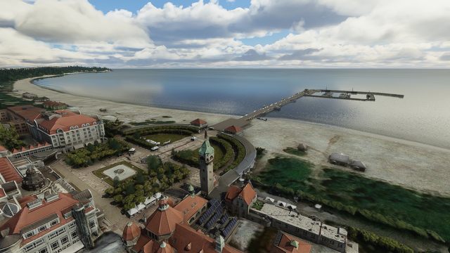 Sopockie molo prezentuje się wspaniale! Wygląda jak w rzeczywistości, ma sporo detali, jak na obiekt do oglądania z góry, a rzucający się w oczy brak ludzi dodaje nawet nieco realizmu i przypomina czasy lockdownu.