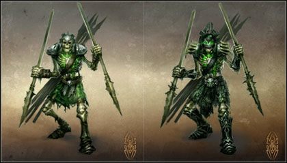 Szkielety to martwe szczątki, które siłą magii nekromanckiej zostały przywrócone do życia (o ile ich stan można w ogóle uznać za życie). Nie odczuwają głodu, pragnienia ani strachu, a ich lojalność w stosunku do tego, kto je wskrzesił, jest bezwzględna. Po ulepszeniu jednostka ta przeobraża się w Kościanego Oszczepnika.
