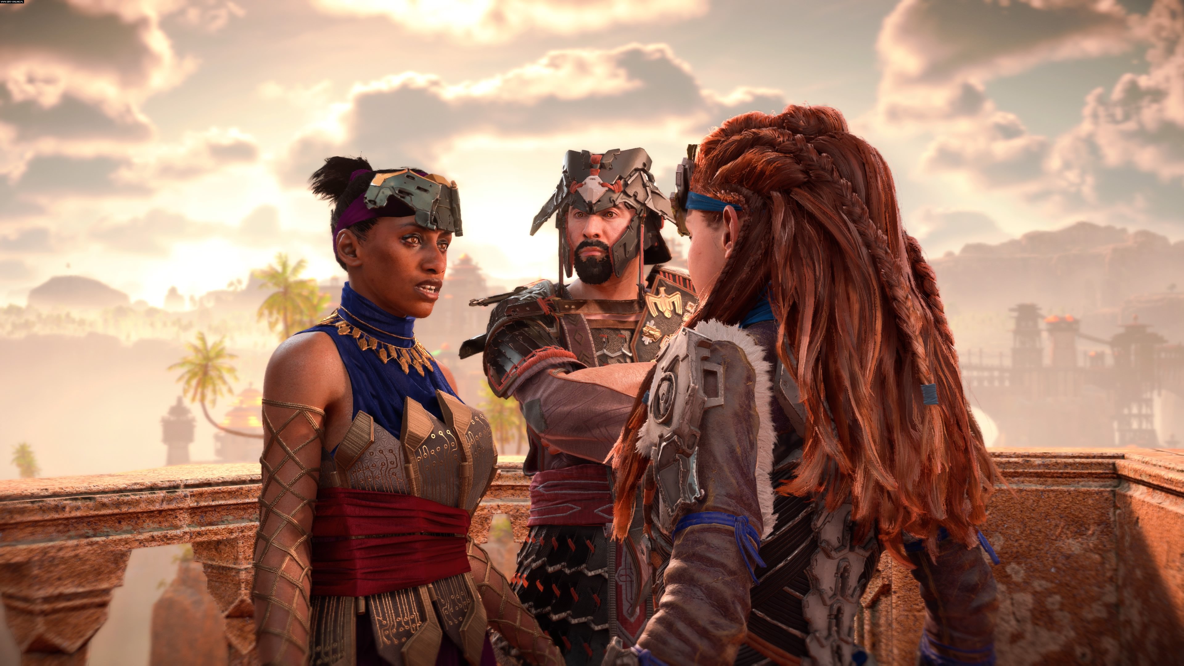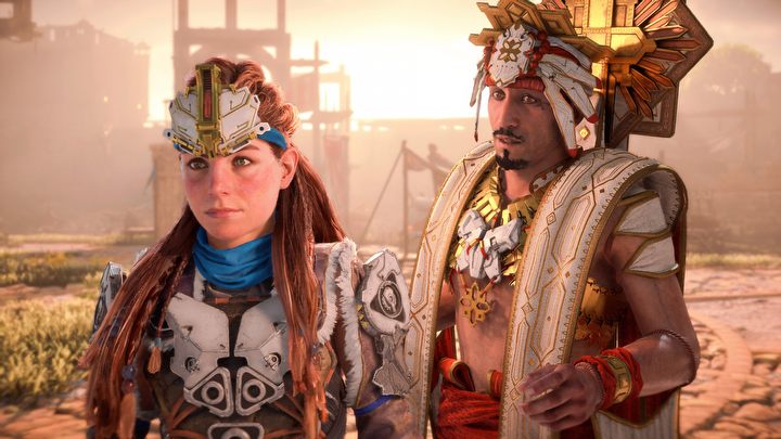 Z prawej widzicie Avada, obecnego Króla Słońce, czyli przywódcę Carja, a także prawdopodobnie przyszłego partnera Aloy. Ja w każdym razie trzymam za nich kciuki.