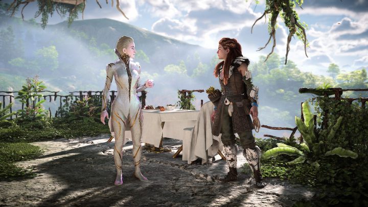 Uthid oraz Vanasha to postacie z „jedynki”, które spotykamy ponownie na początku Forbidden West. Jeśli ich nie pamiętacie, nic dziwnego – niestety, bohaterowie niezależni nie byli najmocniejszą stroną pierwszej odsłony serii, więc szybko się o nich zapominało. Ale stroje mają cudne!