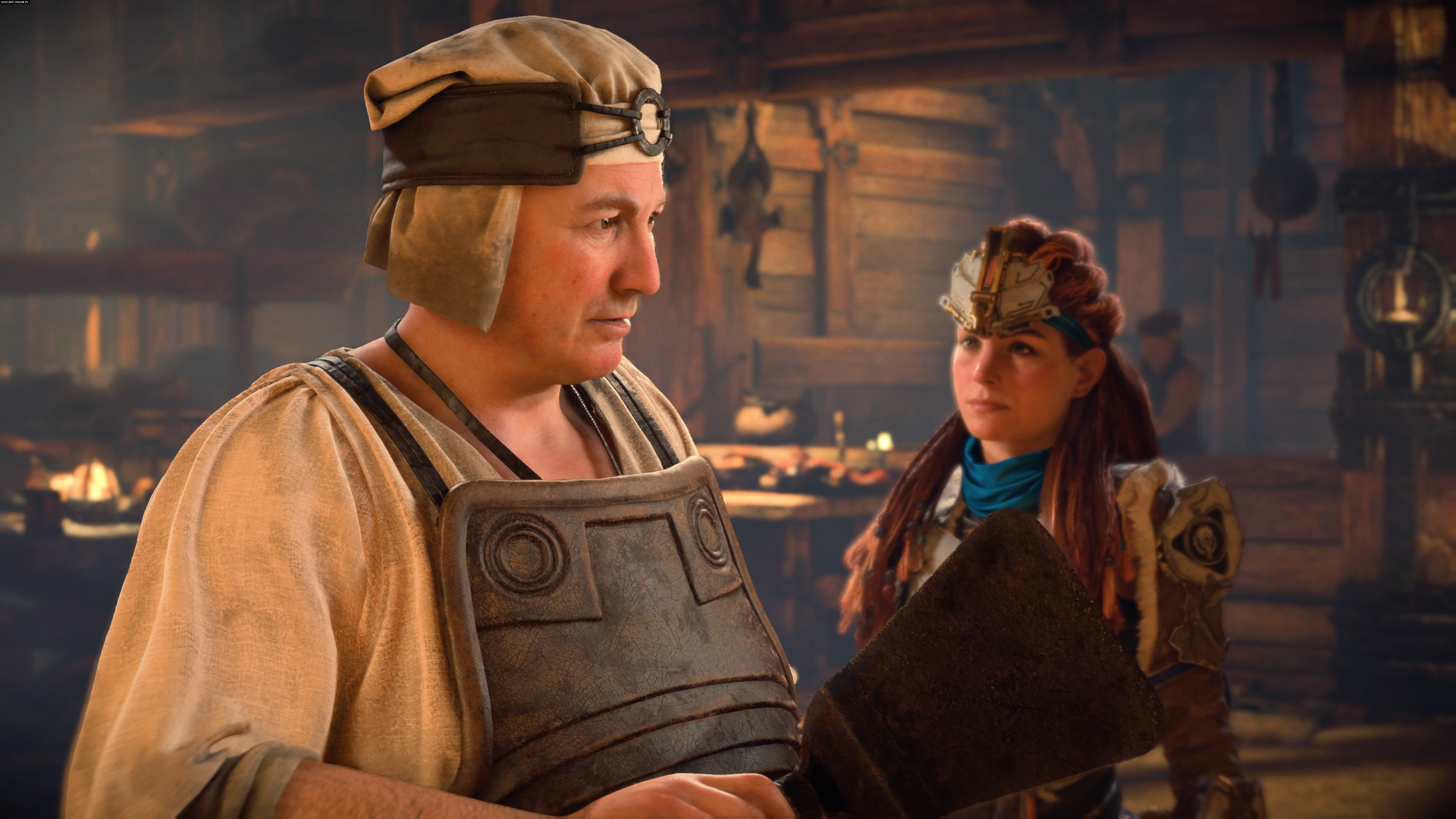 W Horizon Forbidden West pojawili się kucharze – jeśli mamy odpowiednie składniki, upichcą nam wzmacniający posiłek (przydatne szczególnie na wyższych poziomach trudności). Pierwszego z nich spotykamy w Złomiankach. Kuchcik nawet w knajpie ma na sobie typowy oseramski rynsztunek – dużo skóry, grube sploty oraz obowiązkowe nakrycie głowy.
