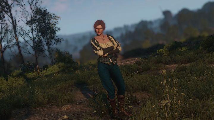 Triss postanowiła nieco wyluzować i sięgnęła po casualową odzież. Oczywiście nie są to jeansy i trampki tylko ubiór bardziej pasujący do świata Wiedźmina. Autor modyfikacji dodał więcej spontaniczności zarówno do standardowej kreacji z kapturem, jak i wersji bez tego elementu. Mod nie zmienia za to wyglądu strojów dostępnych w ramach DLC.