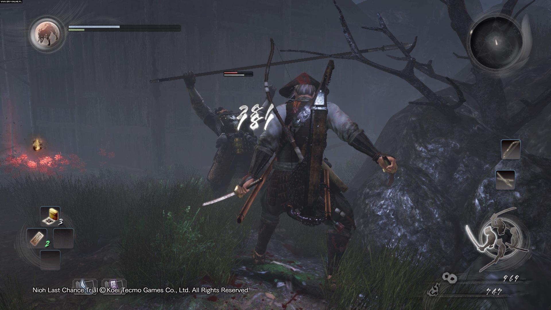 Cykl Souls stanowi wspaniały przykład serii, która pozwala graczowi uczyć się na błędach. NiOh wpisuje się w tę samą filozofię projektowania gier. Poznanie wszystkich systemów rozgrywki, zrozumienie zasad i opanowanie umiejętności postaci to klucz do sukcesu. Na początku jest bardzo trudno, toteż ginie się co parę chwil. Każda śmierć oznacza jednak okazję do odkrywania tajników rozgrywki. Gdy tylko nauczymy się korzystać z całego arsenału broni i wszystkich umiejętności oddanych w nasze ręce, żaden przeciwnik nie sprawi nam wielkiego problemu.