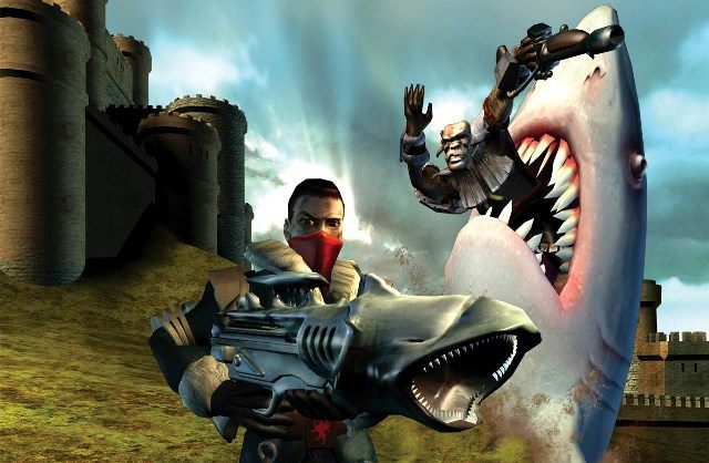 Na długo zanim gang Świętych zaczął panoszyć się po ulicach Stillwater oraz Steelport, specem od wymyślania kuriozalnych gnatów było amerykańskie studio Planet Moon Studios, odpowiedzialne za produkcję fenomenalnej trzecioosobowej strzelanki, Armed & Dangerous. To właśnie tam w 2003 roku po raz pierwszy pojawiła się wyrzutnia samonaprowadzających rekinów, których płetwy grzbietowe wystające z ziemi złowrogo zbliżały się ku niczego niespodziewającej się ofierze. Tuż po chwili wyskakujący z piachu drapieżnik przerabiał nieszczęśnika na pokarm dla rybek... no, jednej dużej rybki. Chyba że wykorzystamy nasz Land Shark Gun do poszczucia przeciwników kilkoma żarłaczami naraz, bo można i tak. Inną bronią, jaką skojarzą zapewne grający w Saints Row IV, jest miotacz czarnych dziur. Podobna idea była już obecna w dziele Planet Moon Studios, pod sympatyczną nazwą Najmniejsza Czarna Dziura Świata. Jeśli któryś z naszych oponentów cudem przeżył atak nasłanych na niego szczęk, dzięki NCDŚ zostawał błyskawicznie wciągnięty w nicość. Choć i tak lepsze to niż zetknąć się z innym gadżetem Uzbrojonych i Niebezpiecznych, znanym jako Topsy Turvy Bomb. Nasz bohater wkręcał w podłoże wielgachny korkociąg, przekręcał go i po chwili zwisał z dyndającymi nogami, podczas gdy wskutek odwróconej grawitacji jego wrogowie spadali w kierunku nieba. Po kilku sekundach sytuacja wracała do normy, a wszystkie gagatki cieszące się z chwilowego wniebowstąpienia zostawały momentalnie ściągnięte na ziemię. Z dość opłakanym skutkiem, warto dodać.