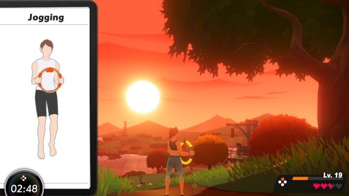 Za zabawą stoi idea mariażu gry ruchowej z prostym RPG. Sercem Ring Fit Adventure jest kampania fabularna, w której obok kolejnych misji głównych możemy wykonywać side questy, zdobywać nowe przedmioty i rynsztunek, walczyć z potworkami – a za nasze działania nagradzani jesteśmy punktami owocującymi kolejnymi poziomami doświadczenia i umiejętnościami. Od typowych RPG dzieło to różni się głównie tym, że żeby biegać w jego świecie, faktycznie musimy zaprząc do pracy własne nogi i tuptać nimi w miejscu, a atakowanie przeciwników odbywa się poprzez robienie różnorodnych ćwiczeń (w puli jest ich kilkadziesiąt).