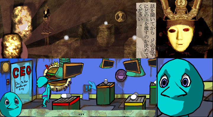 Górna część ekranu opowiada baśń zainspirowaną japońską mitologią, a dolna przedstawia losy kreskówkowego kosmity. Przesuwając mysz, powodujemy ruch kursora w obu rzeczywistościach, a akcje wykonane w jednej z nich wpływają na sytuację w drugiej. Na tym ciekawym pomyśle zbudowano zestaw świeżych zagadek i dwie interesujące fabuły, które wraz z rozwojem wydarzeń zaczynają coraz bardziej się zazębiać.