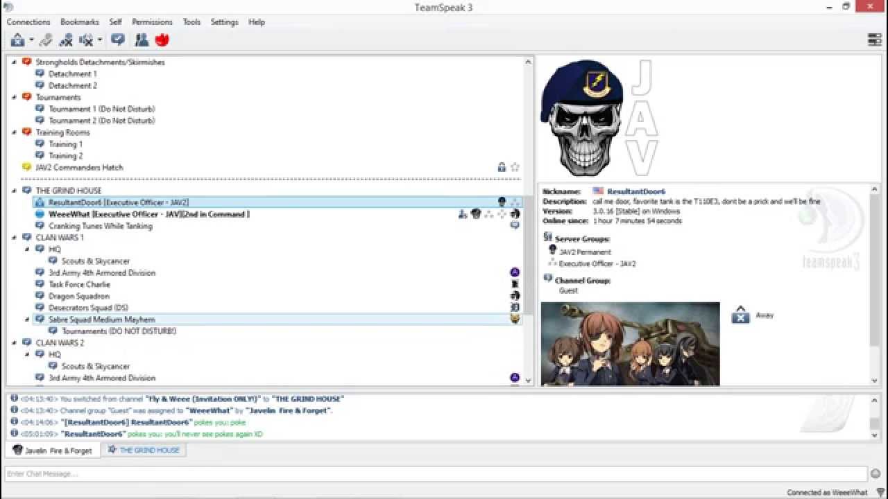 Klasyka gatunku. Jest to jedna z aplikacji, która przecierała szlaki w kwestii komunikacji głosowej wykorzystywanej przy graniu w gry. TeamSpeak oferuje minimalistyczny interfejs, który pozwala zobaczyć, kto jest na kanale, kto mówi oraz czat przypominający z wyglądu kanały IRC.